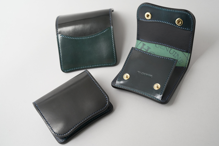 WILDSWANSでは近年特に小型の需要が高く、必然的にミニ財布のラインナップも厚めです。