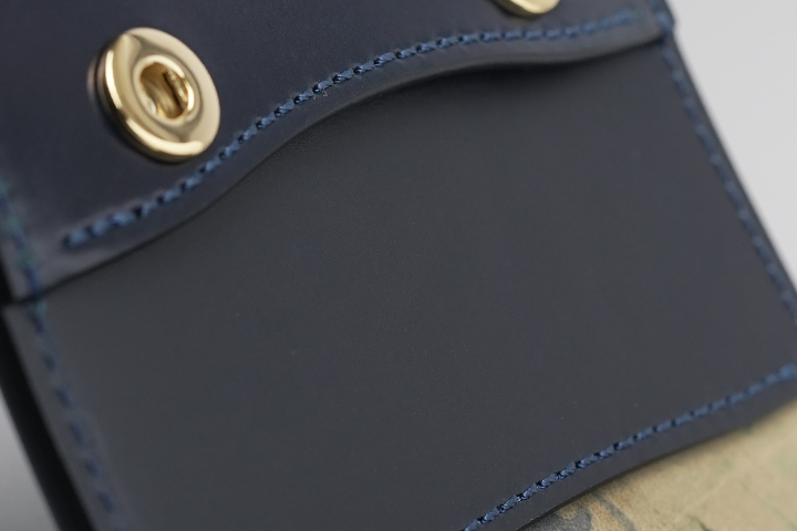 フラップ裏側とマチ部分にはネイビーカラーが使用され、