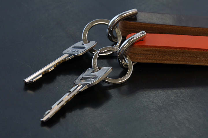 WILDSWANSのオリジナル二重リングが付いた靴ベラキーホルダーです。