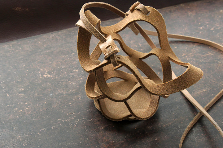 ボディは床革(革の裏面)が重なったもので、両面にレザーを貼り合わせて製作します。滑らかな質感はやすりがけによるもので、一見地味な作業ですが、一度始めるとつい没頭してしまいます。
