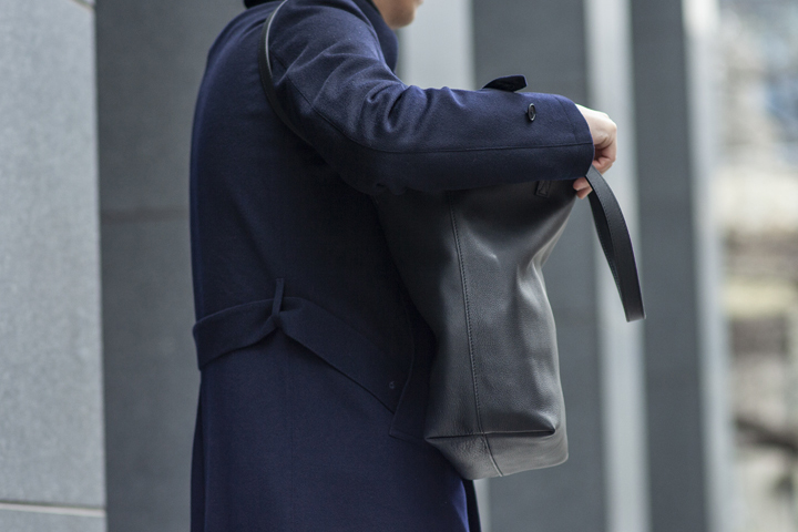 底板は取り付けられていないために収納した荷物によって柔軟に形を変えることで、肩掛けの際に体に密着がし易く、まるで薄手の生地製トートのようなフィット感の高い構造になっています。