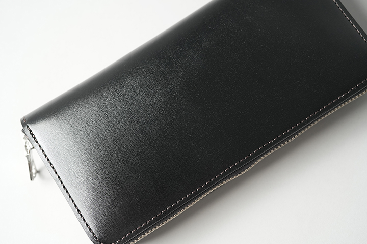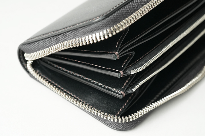 WILDSWANSとCorbo.のチーフデザイナーである古瀬聡氏のコラボレーション「Walkersシリーズ」から生まれたkf-001は、ラウンドファスナー型の長財布です。外装は表裏ともにポケットなどはなく、無駄を削ぎ落した非常にシンプルなディテールです。