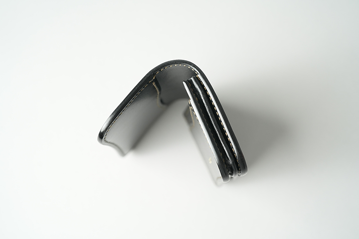 GENERALのメイン収納部にはドレープ状のマチを採用しています。こちらが名刺やカードの収納枚数に応じて伸縮します。