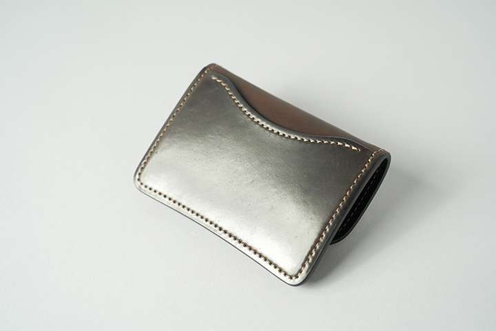 革の質感を純粋に感じることができる定番の名刺入れです。名刺交換のシーンでは、ダークコニャックの不思議な色合いに注目が集まりそうです。