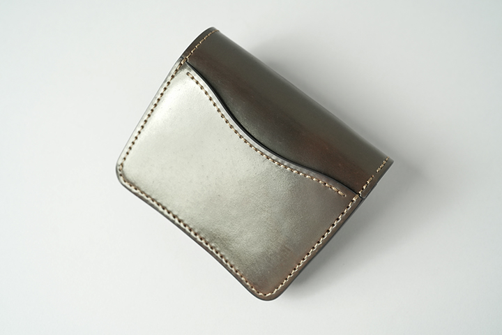 WILDSWANSを代表するミニ財布として不動の地位を確立しつつあるCASA。こちらも背面にカードポケットを用意しています。上辺から下辺にかけて徐々にタイトになるようにシェイプされたディテールです。PALM-V2も同じミニ財布ですが、全く異なるデザインを採用しています。