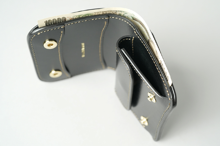 CASAの札室も本体のサイドです。PALM-V2同様に全ての日本紙幣のサイズに対応しています。もちろん内部も総革仕様です。