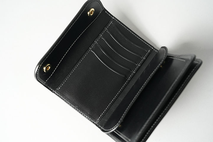 ※オープンポケットに付いた7050番ホックはフラップパーツまで貫通していますので、実際にはホック間のスペースにカード類を収納して頂けます。