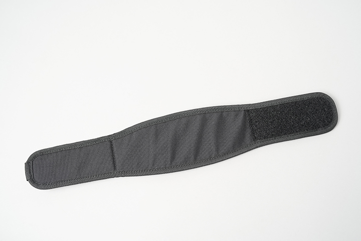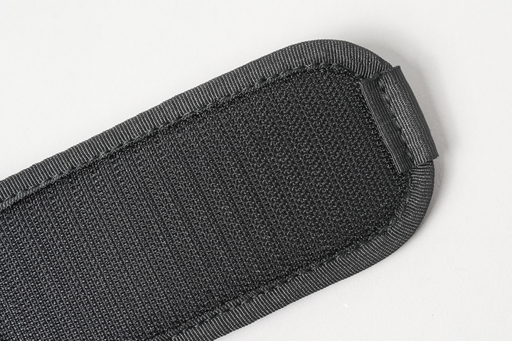 帯の背面は、実際足首に接することからレザーパーツなどの装飾はありません。また、適度なハリ感とフィット感を出すために帯の生地内部には心材を挟んでいます。