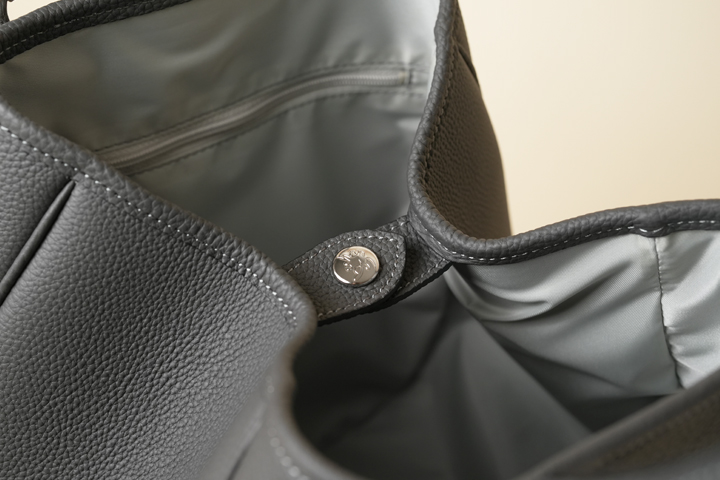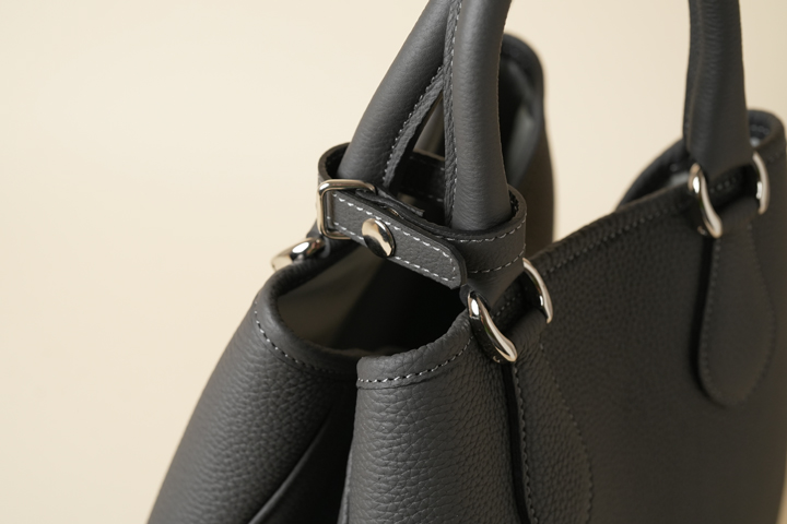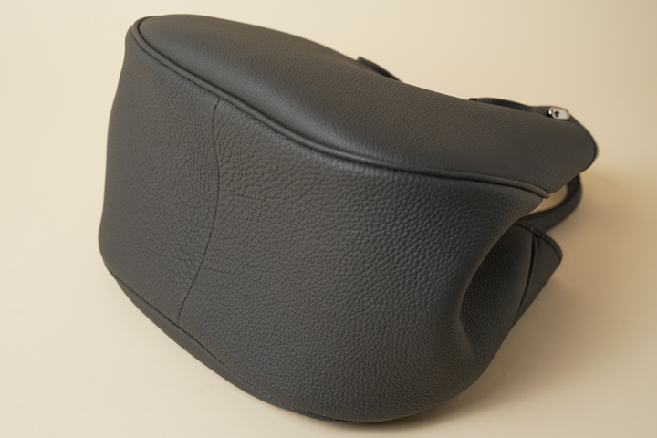 特に使い始めは革の張りが強いため、ハンドルに付属したベルトによってプティトートのフォルムを保ちます。このベルト自体はホックによって簡単に取り外しが出来ます。
