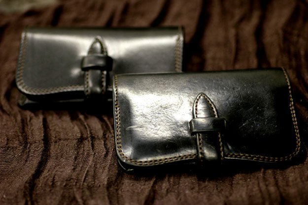 下の写真はWILDSWANSの名刺入れ・STINGですが、奥が新品の状態・手前が10年間(!)、使用したものです。未だ現役です!
