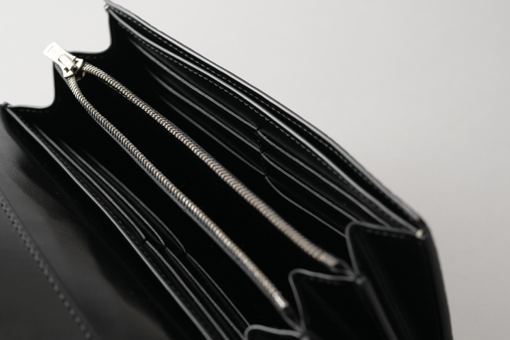 本体の側面には札室が設けられています。 札室内部まで革が貼られた贅沢仕様のため紙幣の滑りも良く、スムーズに出し入れが出来ます。