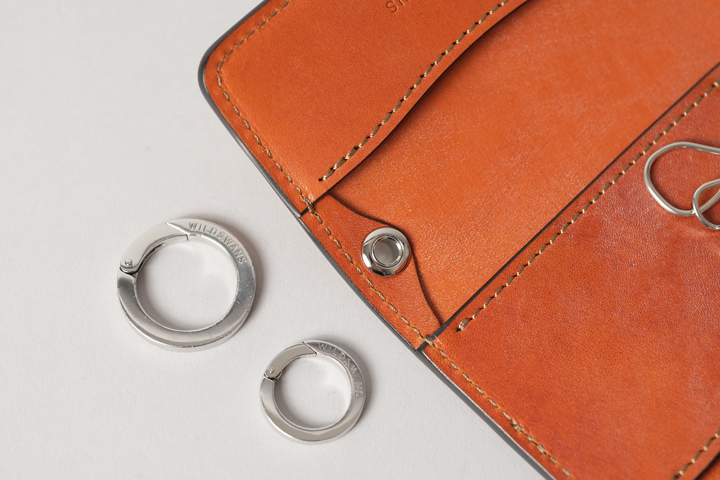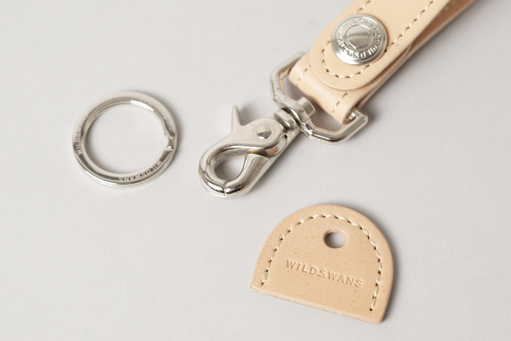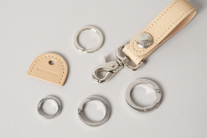 また、帯にはWILDSWANSロゴ入りのオリジナル2重リングが付属しており、こちらをパンツのベルトループに通したり、鍵を通してお使い頂くことができます。