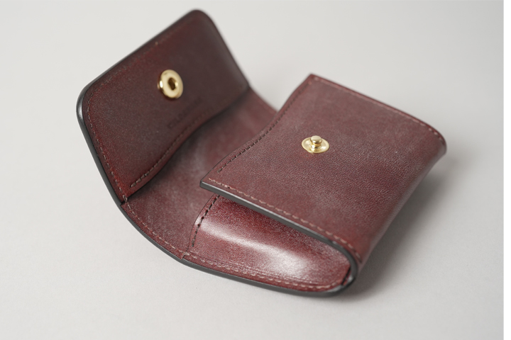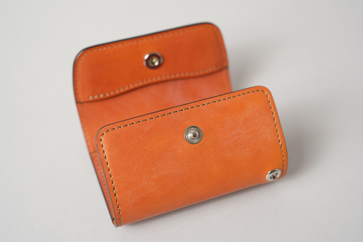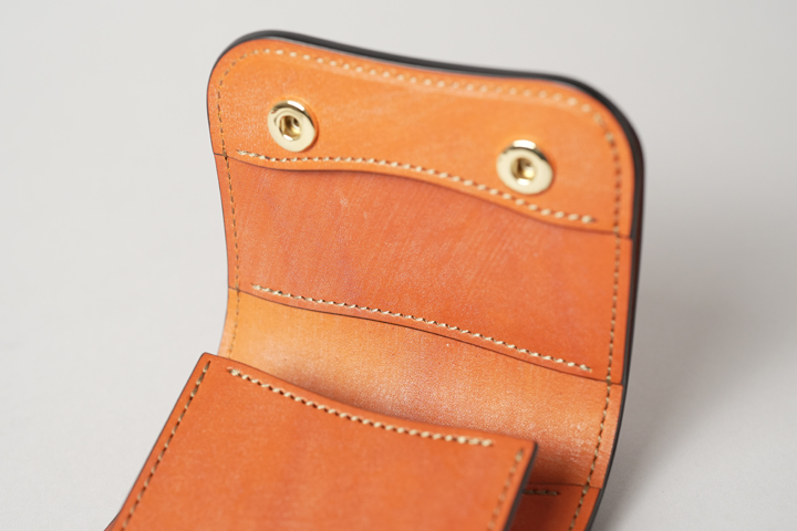 コインケースフラップにはホックが1点備わっています。