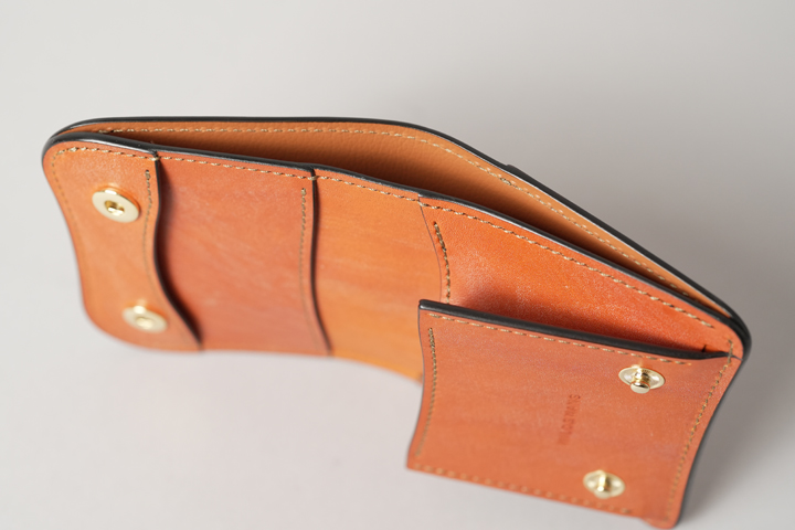 ARTHURのフラップにはホックが1点備えられており、片手で素早く開くことができます。お会計の際など急いでカードを取り出したい時に便利な仕様です。