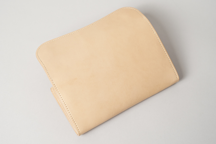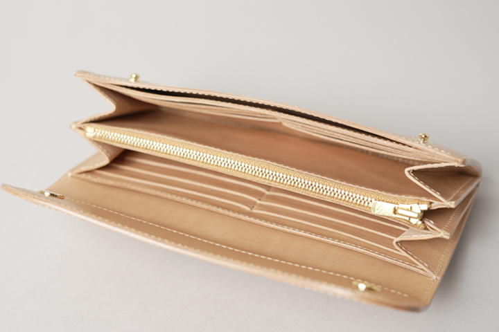 コバ(縁)に染料を用いない「素みがき」を行い、ライトベージュのステッチを合わせて明るくまとめています。