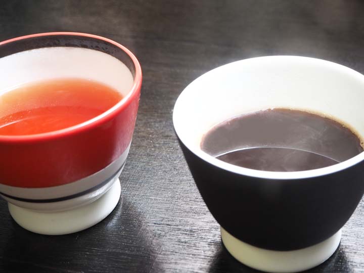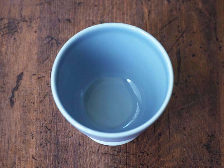 こちらはスタッフ私物の別色ですが、実際にお茶やコーヒーを注ぐカップとして使用しております。