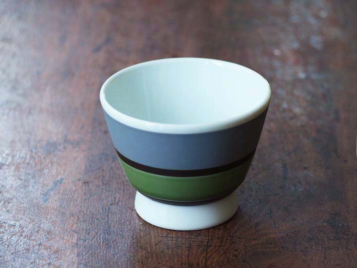 こちらはVERDE(ヴェルデ)です。上品さと透明感を湛えるフランスの伝統色「グレイッシュグリーン」のヴェルデ。器上部のマットなグレーと、艶のあるグリーンとのコンビネーションが美しく、非常にモダンな印象を感じさせます。