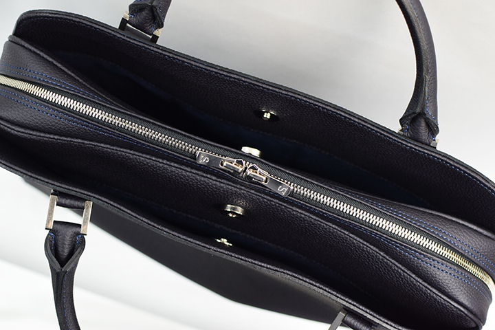 マチ幅は9㎝とスリムな外観となりますが、あらゆるものがデータ化される最近のビジネスシーンに於いてはとても現代的なサイズであり、PCやタブレット端末など必要なアイテムを無駄なくしっかり収納することができます。メイン収納部には2部屋の内ポケットを備え、細々したものを仕分けして収めるのに適しています。