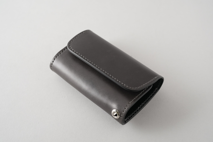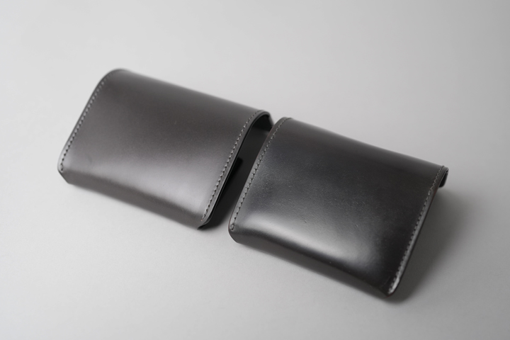 今回のコードバンのカラーはグレイになりますが、タンニン鞣しの皮革へ染料でグレイのカラーを出すことは非常に難しいとされている中、しっかりとした深みのある色味に仕上げられています。