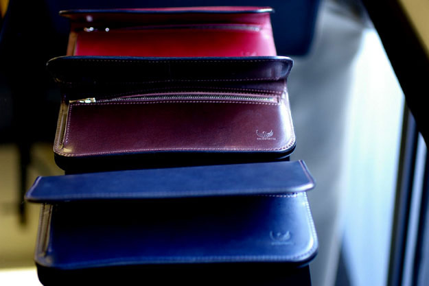 WILDSWANSは最近、新作のラッシュが続いています。今回はロングウォレットの新作である、SURFSをご紹介します。(上の写真はブッテーロのワイン、サドルプルアップのチョコ、ブッテーロのネイビーで作ったものです。)