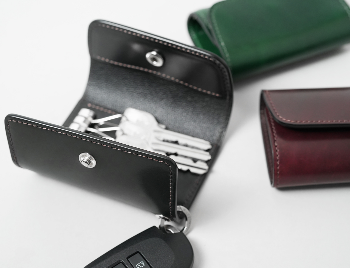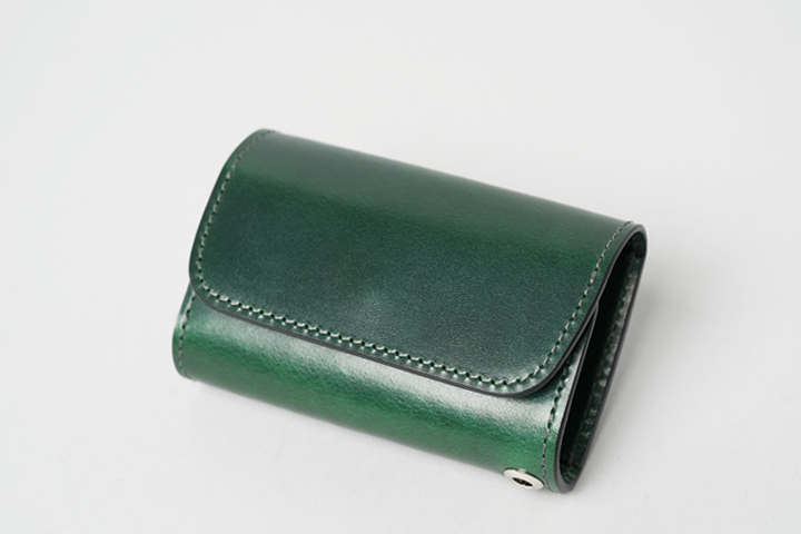 サドルプルアップのGREENを使用したアイテムは以前にもご紹介しましたが、発売後まもなくすべてのアイテムが完売となりました。今回僅かではありますがスポットカラーであるグリーンのサドルプルアップがご用意できましたので、注目の新型キーケースを製作してみました。ぜひご検討ください。