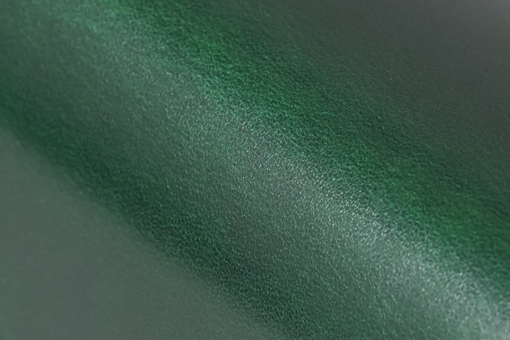 こちらはスタッフが半年ほど使用したサドルプルアップ/ GREENのTONGUEです。新品時と比べて柔らかな緑色が浮き出てきたようで、透き通るような美しい風合いを堪能して頂けます。油分を多く含む皮革にみられる「プルアップ効果」によって、ご使用からしばらくの間はやや色味が明るいように見えることもありますが、使用を重ねることで徐々に変化が起こり、次第に落ち着いたトーンになってまいります。