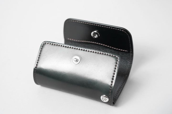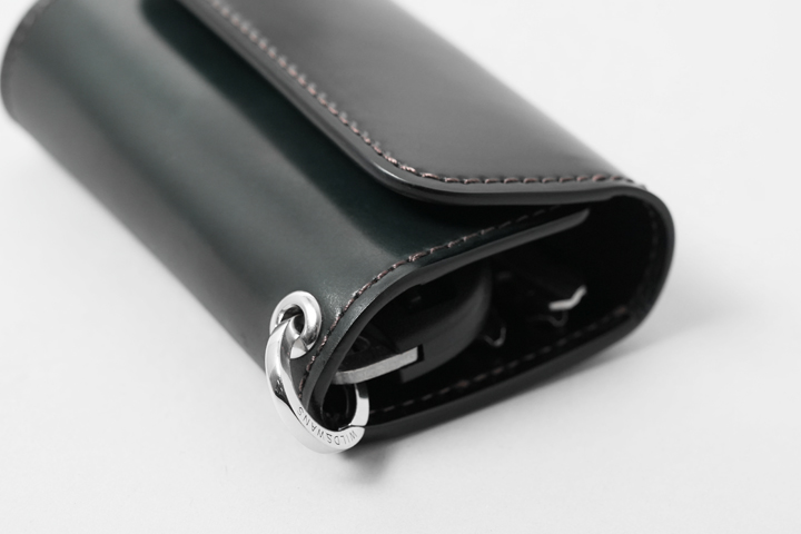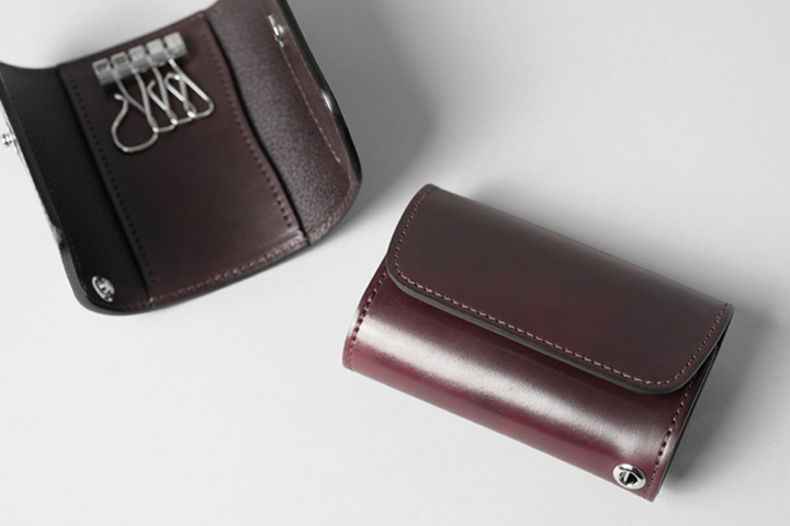 イングリッシュブライドルレザーは、シェルコードバンの鋭い光沢とも相性が良く、また深く上品なカラーコンビネーションも絶妙で、まさに大人にふさわしいキーケースといった佇まいです。