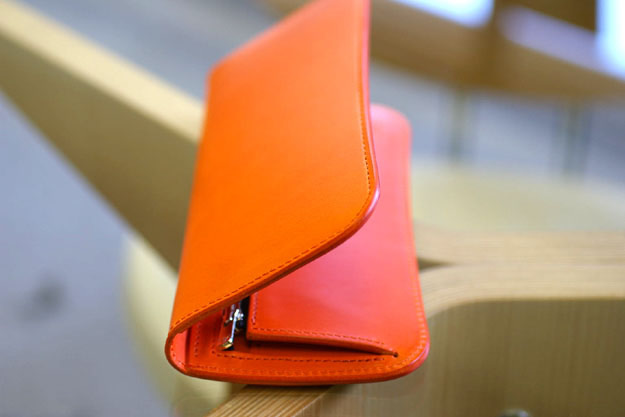 SURFSの続きです。(写真はブッテーロのオレンジで作ったものです。兵庫県芦屋市の「芦屋かばん響」さんの別注バージョンです。これがまた鮮やかなオレンジ色で、イタリアの革ならではの発色の良さがあります。)