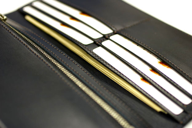 ご要望の多かったコインケースが付いていない両側カード段のバージョンも近日中に発売する予定でいます。お楽しみに。