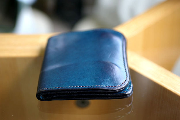 世の中には様々な革があります。柔らかい革、硬い革、スムースの革、型押しされた革、エイジングする革、しない革など、実に多種多様な革が身の周りに存在します。上の写真はミネルバリスシオで作った、小銭入れのPALMです。