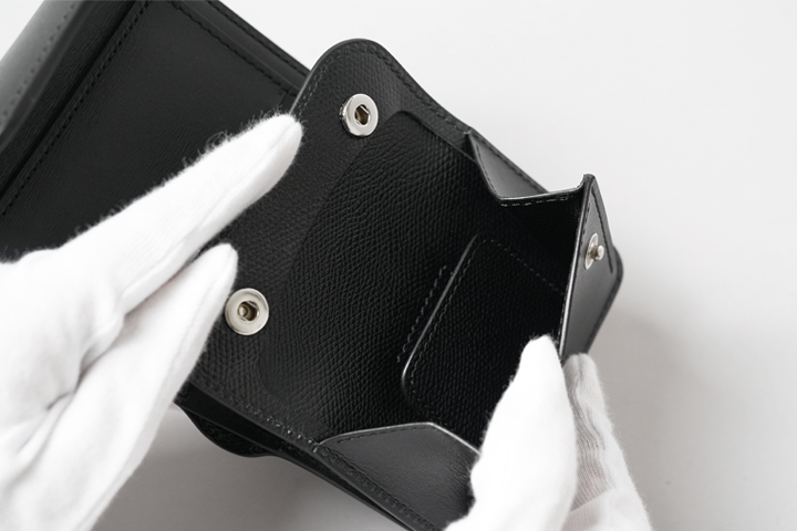 ※コインケースの上部には構造上ちょっとした隙間がありますが、こちらは収納部ではないため、何も収納しないようにお願い致します。