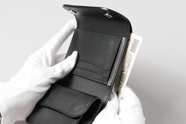 ミニ財布ではありますが、札室は日本紙幣の中で1番大きい1万円札も問題なく出し入れできます。