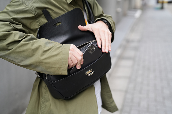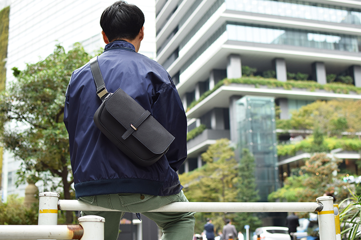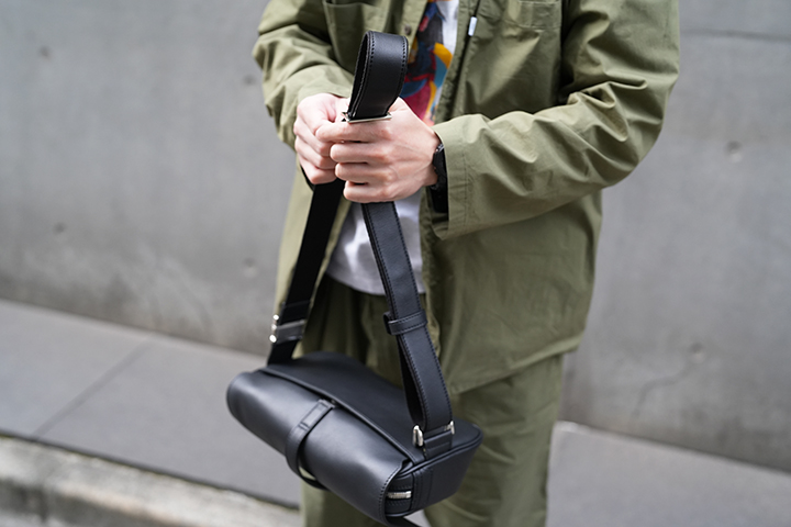 少し大きな容量の2WAYショルダーバッグ・MONTPARNASSE / RIGIDですが、適度な幅のストラップにより長時間の使用時にも疲労を軽減させる工夫が施されています。また、メイン素材であるモンパルナスカーフ自体が比較的軽量でソフトな質感を持つレザーであることから、一般的なレザーのショルダーバッグよりも快適にお使い頂けます。