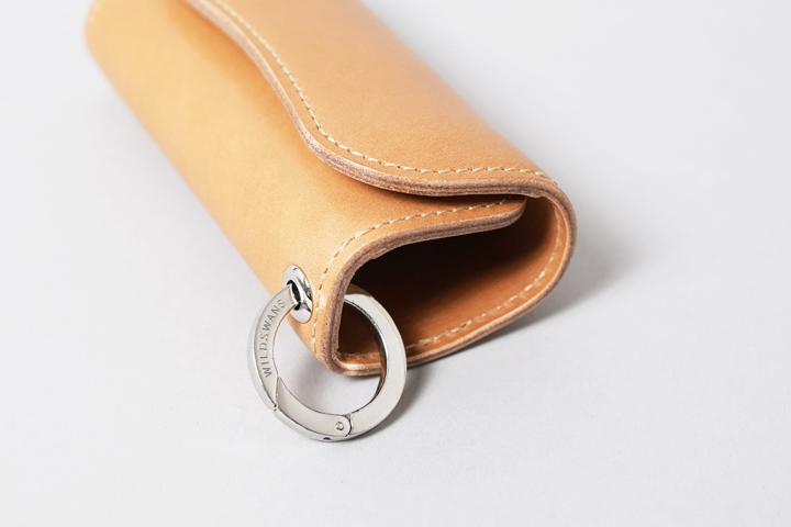 ハトメにはWILDSWANS製品のCARABINER KEY RING(S)、(M)が装着できます。CLIPPERⅢは手にフィットする細身体型ですので、車のスマートキーのような大振りな鍵は金具を介してハトメに装着してお使いください。