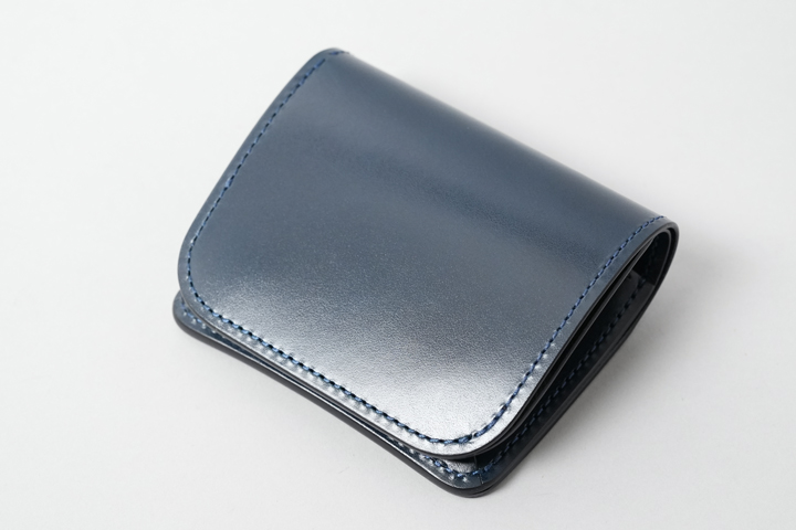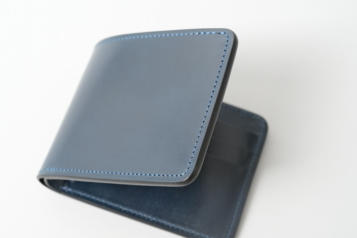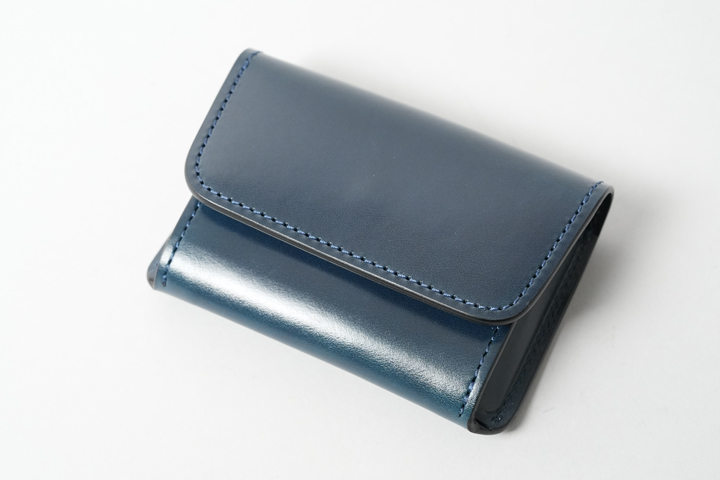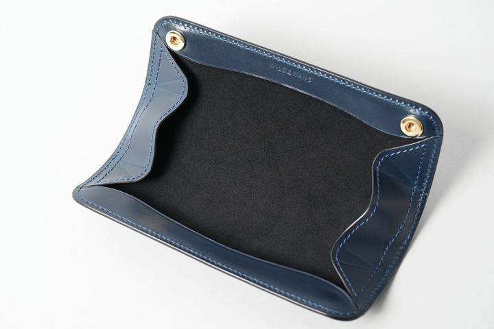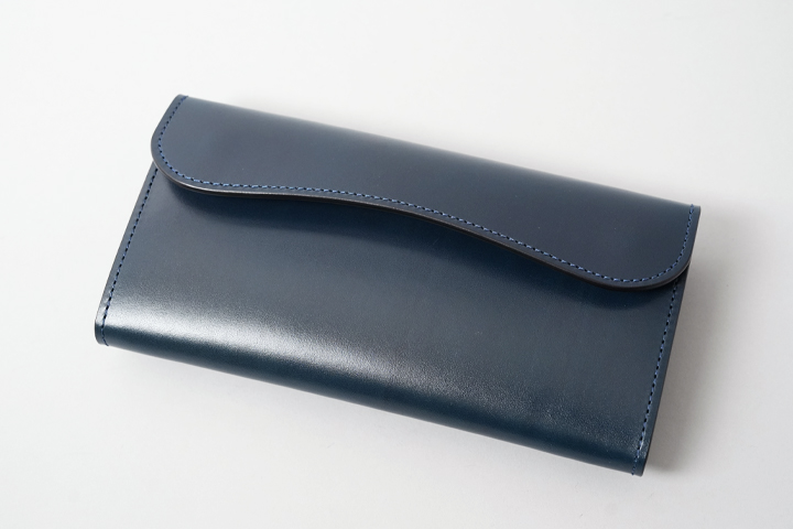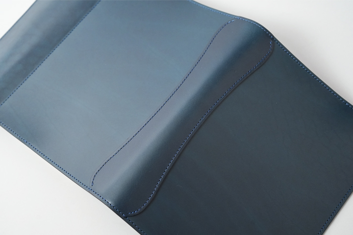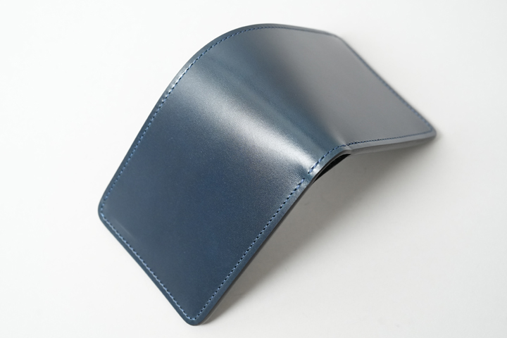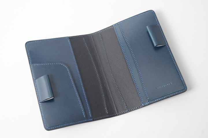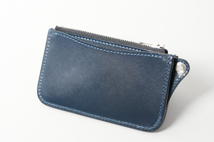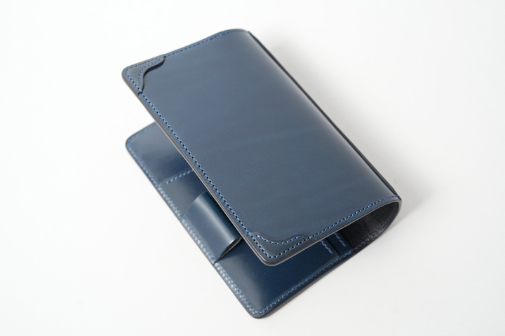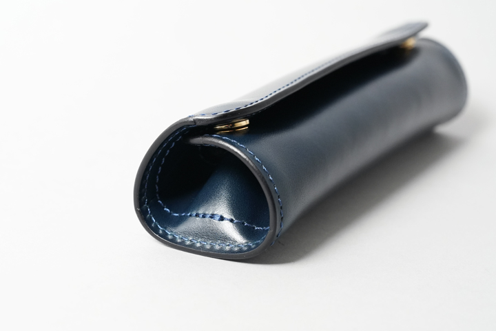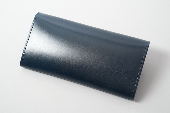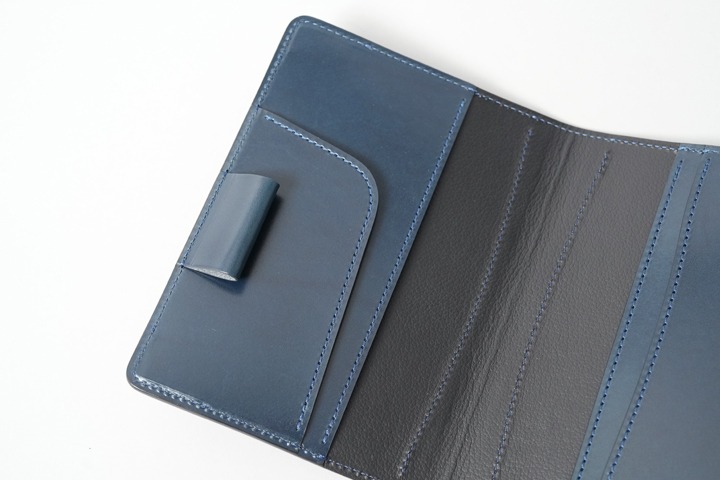 外装部分にポケットや装飾等は付属しませんが、その分サドルプルアップ/フレンチネイビーのフラットな板面を堪能することが出来ます。