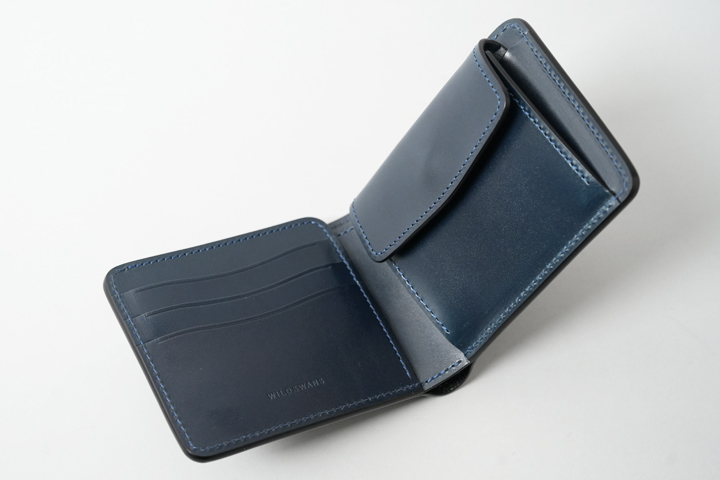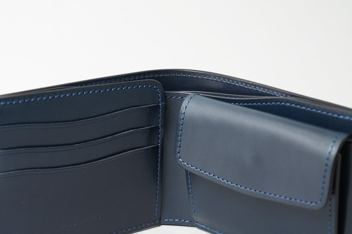 コインケースは、両側に設けられたマチにより手前に大きく開きます。こちらのマチはWILDSWANSの様々な小物製品に取り入れられている仕様となります。