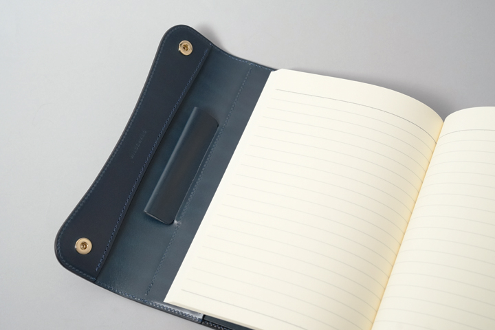 ノートとペンを収納することができる堅牢なノートカバーです。