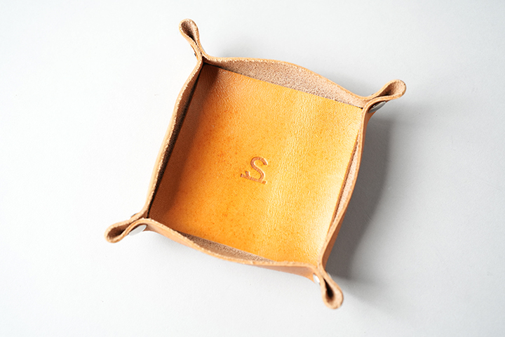 帰宅してカギや腕時計をさっと保管するのに便利なレザートレイ。