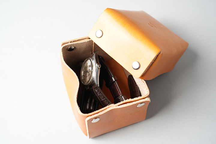 最後は少し手のかかるBOX型のアイテムです。蓋をする仕様から、大切なものを保管する安心感は各段に増します。蓋の上にはWILDSWANSのロゴが刻印されています。