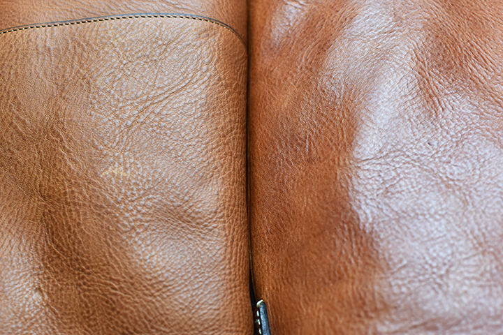 画像左が使用前のミネルバボックス/コニャック、画像左が使用から約1年の同サンプルです。現在、WILDSWANSの直営店には展開する5色がすべてそろっている状況です。素材にはイタリアの銘革・ミネルバボックスを用いることで魅力的なエイジングと革ならではの風合いを存分にお楽しみ頂けます。