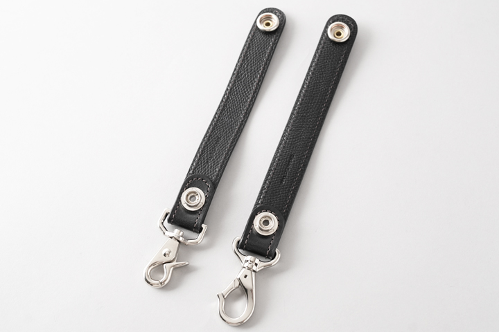 シンプルなデザインでありながら、ナスカン金具やループ状の本体といった構造によって使い方の幅が広く、それでいてしっかりと革が主役になるアイテムです。