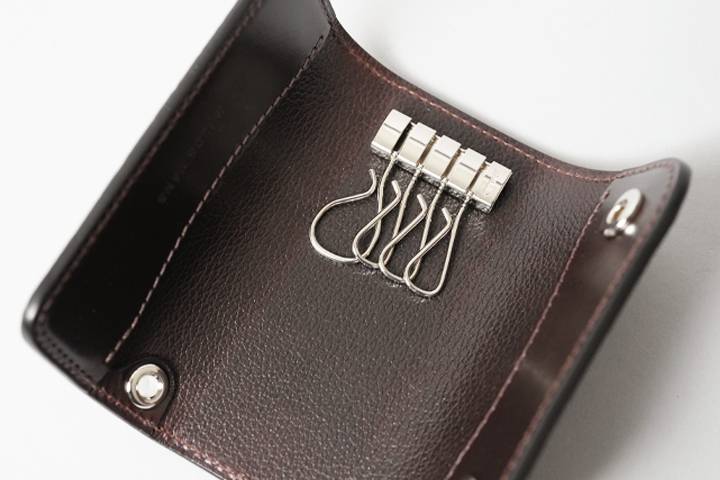 革のハリ感によって内装には空洞が確保され、複数の鍵が収納可能になっています。