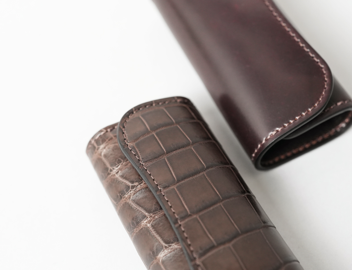 CLIPPER IIIはキーケース・CLIPPER IIのリニューアルモデルとして2023年10月に誕生しました。サドルプルアップ、フルグレインブライドル、シェルコードバン、クロコダイルといった定番素材の他、いくつかの限定素材などで製作してきましたが、今回は定番素材に新しいカラーが加わる運びとなりました