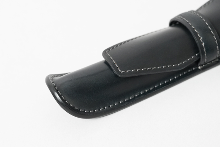 革の持つ反発力により壁が内側へ入ろうとするため、ペンクリップを挟まなくてもケース内でペンがグラつくことなくフィットします。