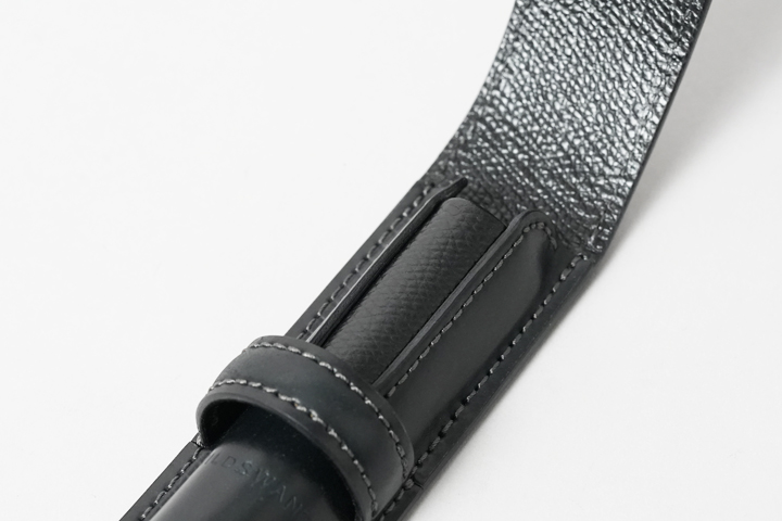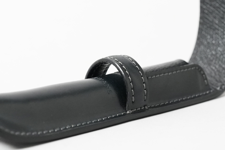 ペンクリップを挟む部分の革は、耐久性のある摩擦に強い型押し革を使用しています。
