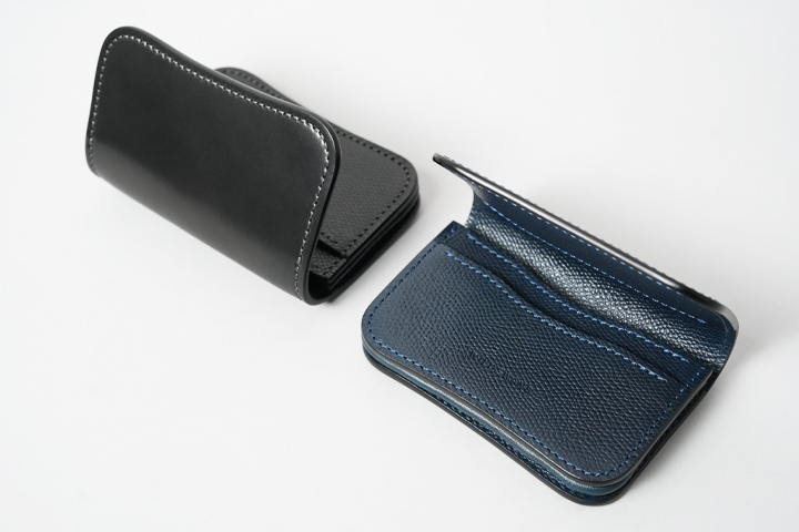 丸みを帯びたフォルムと多層に重なるコバが特徴的な名刺入れです。