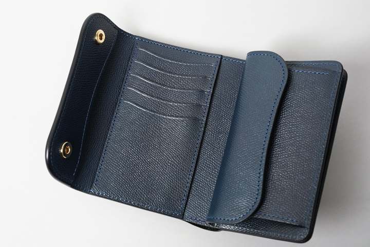 長財布並みの収納力を誇る中型の3つ折り財布です。