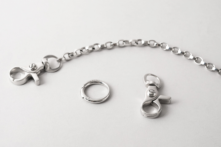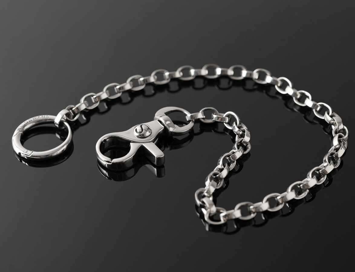 オリジナルのサージカルステンレス製チェーンに新型のカラビナとTRIGGER SNAPを両端に接続したウォレットチェーンのフルセットです。