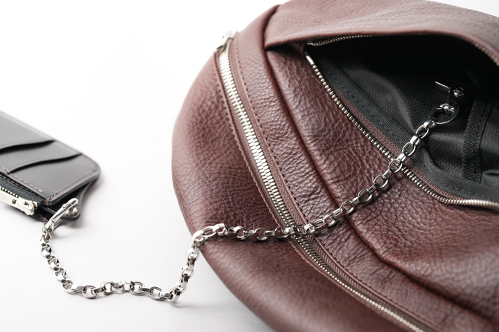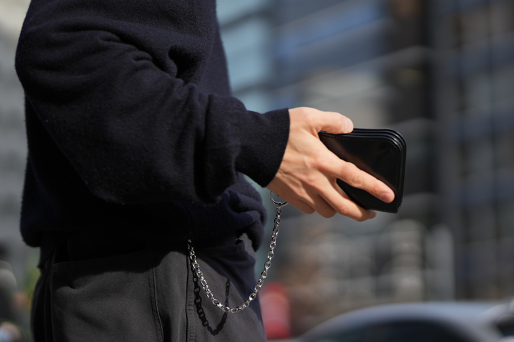 WILDSWANSのウォレット系のアイテムの中でも取り分け印象的なモデルの1つで、武骨なデザインにウォレットチェーンも良く似合います。