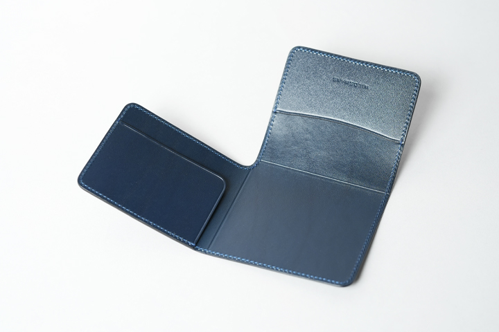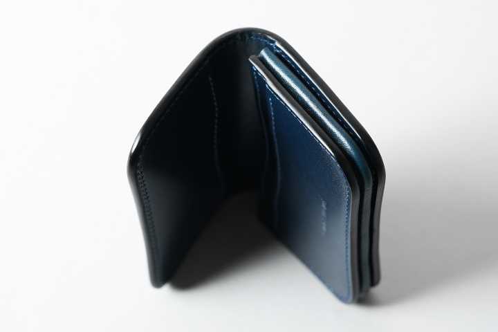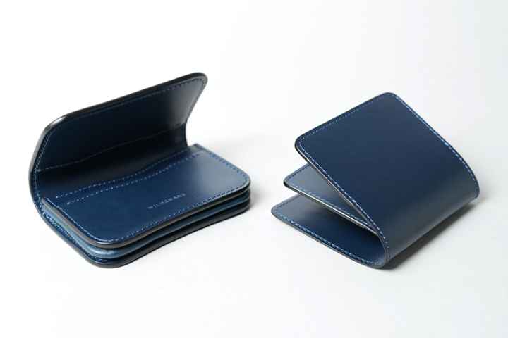 フレンチネイビーシリーズで初展開となる二つ折りの長財布の登場です。